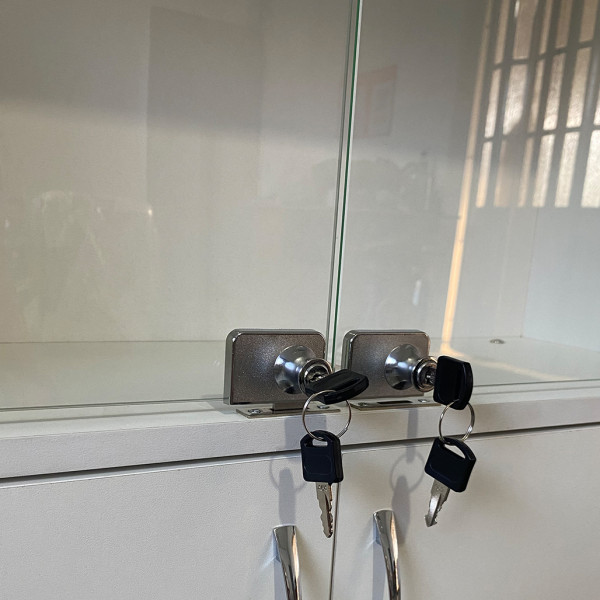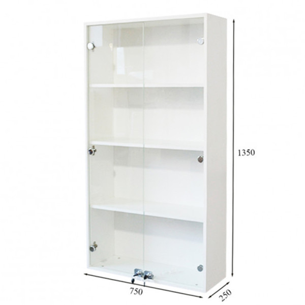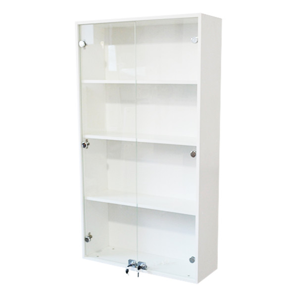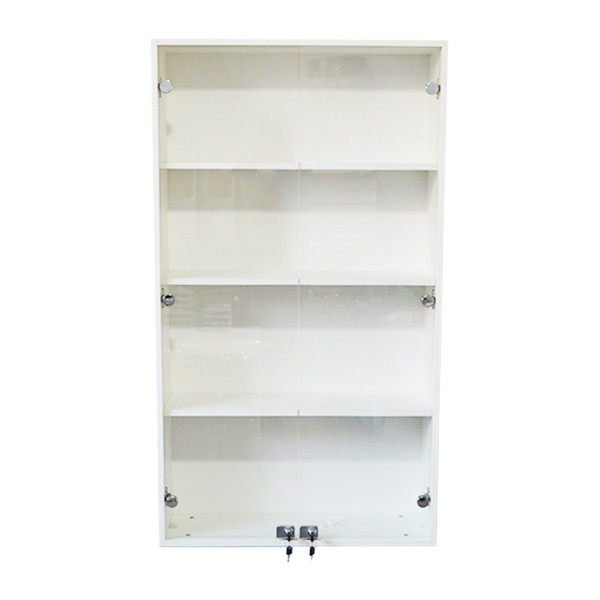 Вітрина зі скляними дверцятами та замочками. Також може бути використаний в аптеці, косметологічному салоні, перукарні, в домашніх умовах або офісі для зберігання паперів.